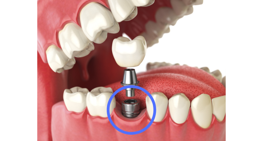 そこで、このアバットメントを装着することで、骨の中のインプラントと口の中の人工歯をつなぐ役割を果たします。